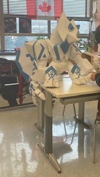 Finally, I want to share some work that was completed by a grade 9 student here. I am constantly impressed by the skills and stories that so many of our students here exhibit. We have elite athletes who compete at the provincial and national level, and we have musicians who work with local artists. Often these accomplishments and passions do not get the recognition they deserve as much of this does not occur within these walls. However, the skills and lessons learned outside constantly transfer over inside and support student learning. Attached is a picture of a model dragon that was built, completely independently, by one of our students. It is made completely out of cardboard and fabric. It has moving hinges and operates like a full-size puppet. This project alone has connections to curricular outcomes in mathematics, industrial arts, fabrication, art and fashion. The student then creates home-made movies with their creations which links in Drama, Language Arts and Technology. Perhaps most importantly, the success a student experiences and the confidence and pride they feel lasts long after they leave this building.